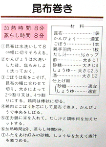 先ずは圧力鍋に書いてある「昆布巻き」 の作り方