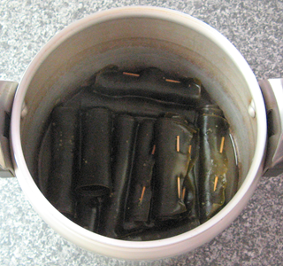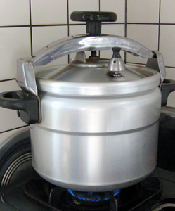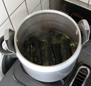 全てまき終わりました。 それを18年間使用して来た圧力鍋に入れたのが右図。